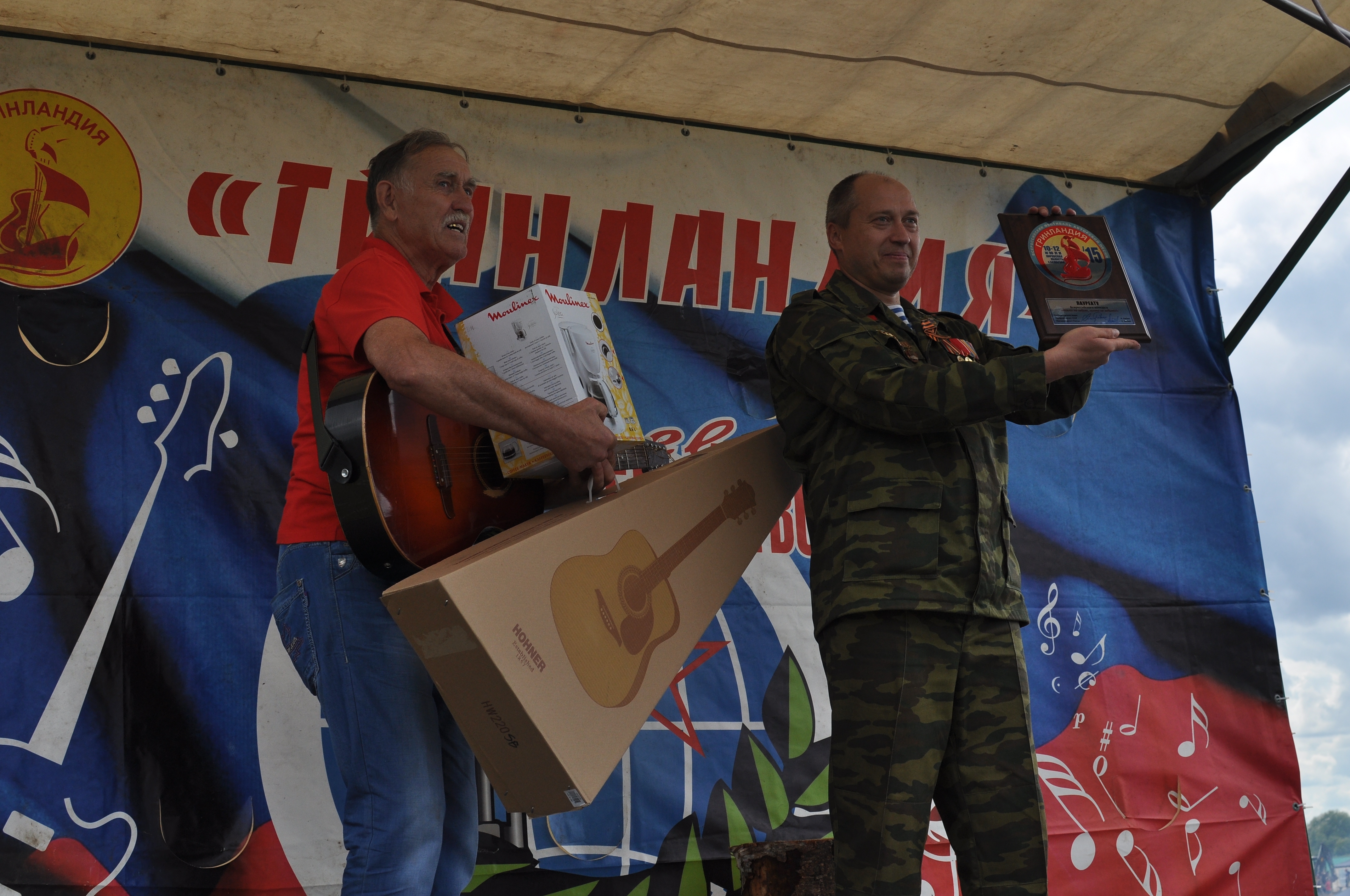Одну гитару вручили лауреату мастерской Михаила Трегера - Сергею Шубному из села Ломоносово Архангельской области. Вторая гитара досталась кировскому ансамблю «Вольный колос», который стал лауреатом мастерской вятских авторов-исполнителей. И третью гитару вручили на военно-патриотической сцене лауреату заочного конкурса "Никто не забыт, ничто не забыто" - Шавкату Бадамшину.