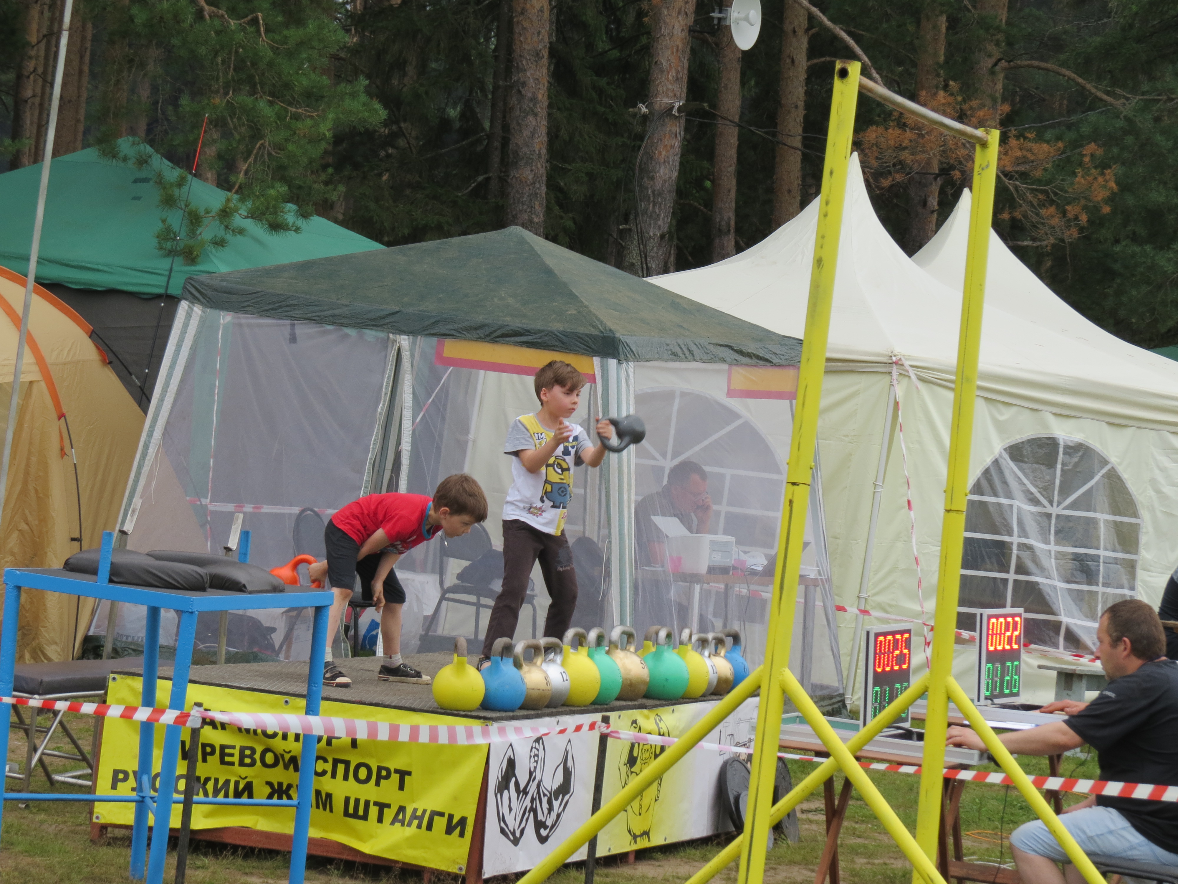 Уже установлены сцены, разбит детский городок, а все желающие могут продемонстрировать удаль и силу в поднятии гири.