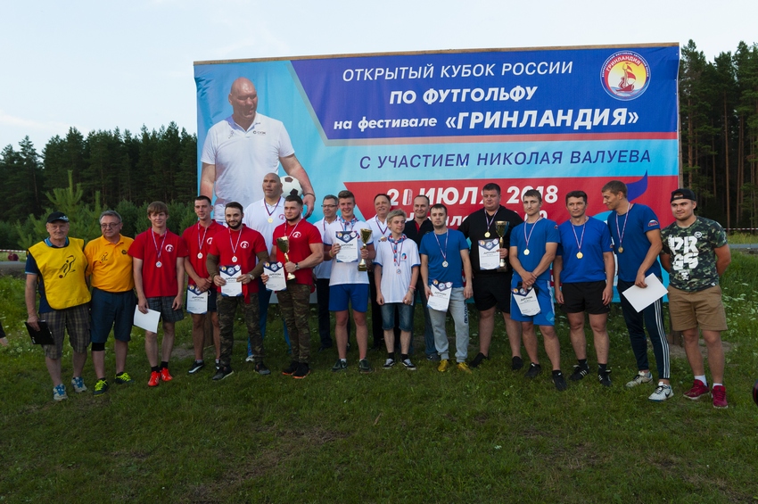Победители отборочных игр открытого Кубка России по футгольфу сразились со звездной командой Николая Валуева.