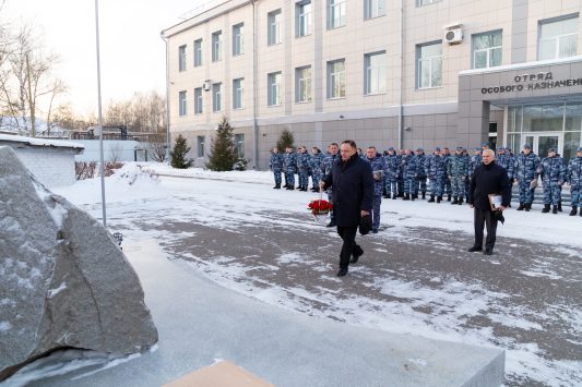 Олег Валенчук наградил лучших сотрудников ОМОНа, особо отличившихся во время проведения музыкального фестиваля «Гринландия», вручил благодарственные письма и памятные подарки. Депутат возложил цветы к памятнику бойцам ОМОНа, погибшим при исполнении боевых задач.