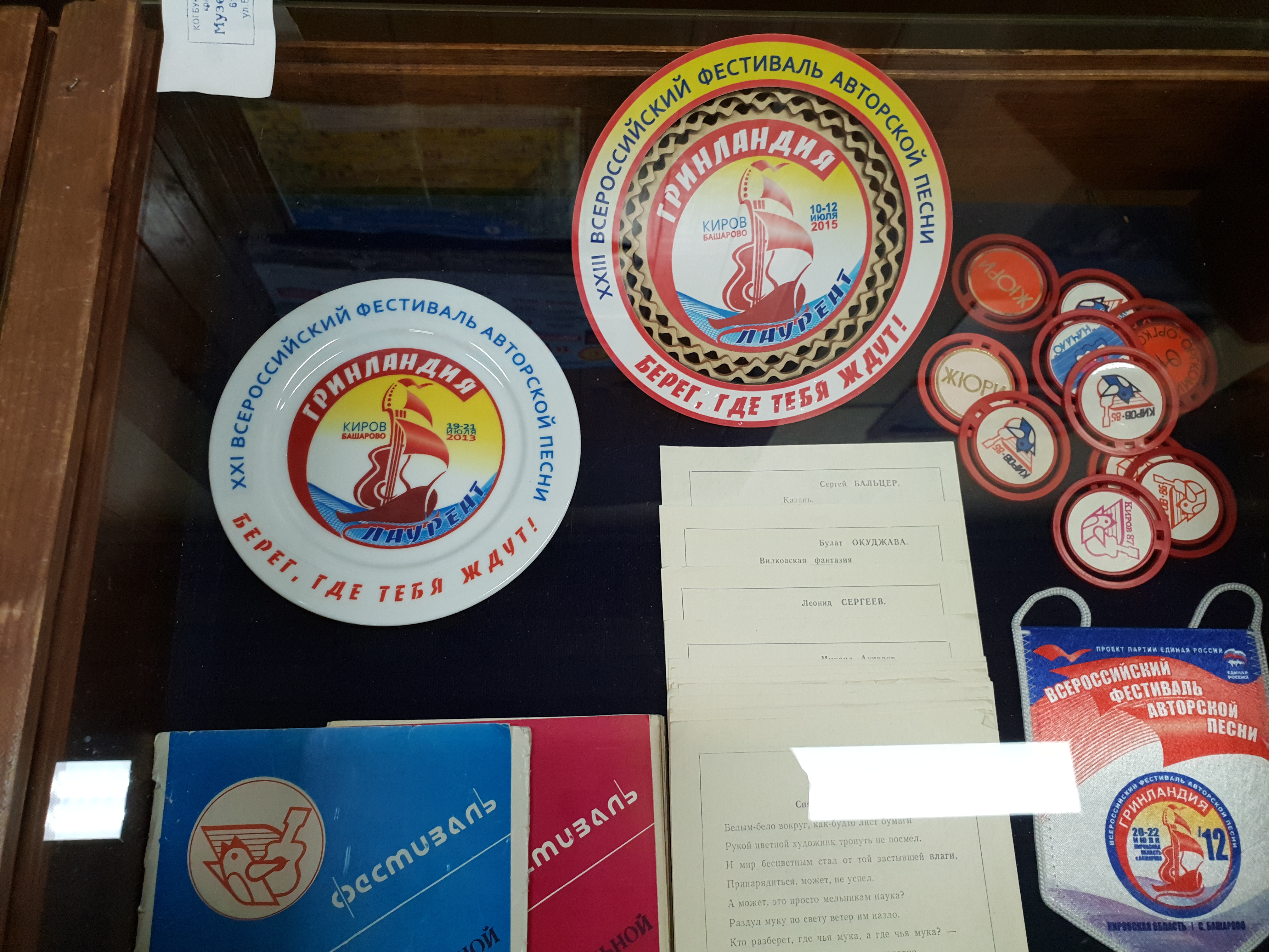 Экспозицию дополнили архивные снимки первых фестивалей и различные артефакты: значки, буклеты, программы, песенники, вымпелы и отзывы гостей, которые бережно хранятся в архивах оргкомитета «Гинландии» и членов жюри.