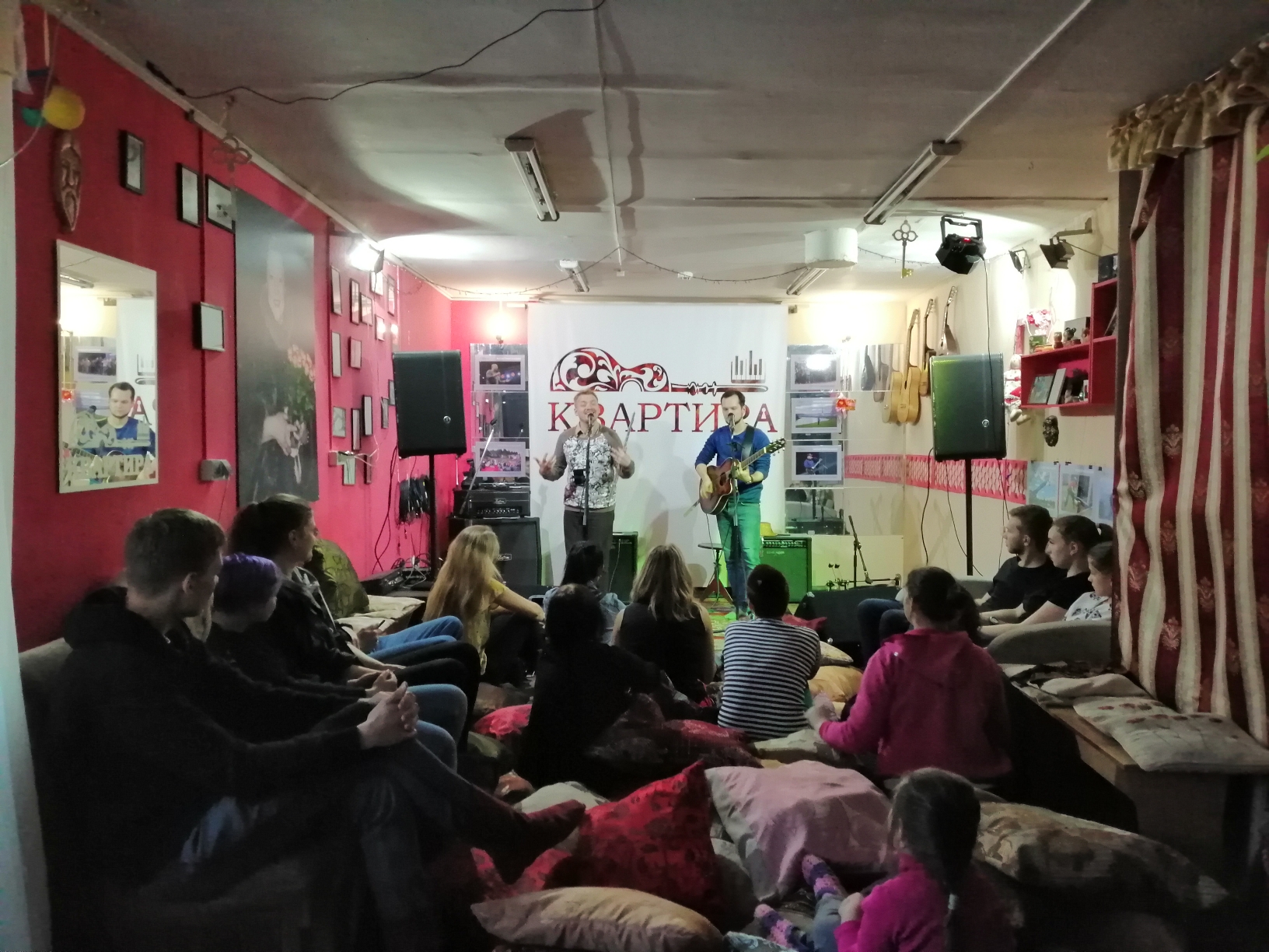 Выступления в клубе «Квартира» традиционно собирают поклонников хорошей музыки и живого общения. В узком кругу проходят очень душевные, камерные концерты на которых можно не только насладиться исполнением любимых мелодий, но и пообщаться с артистами.