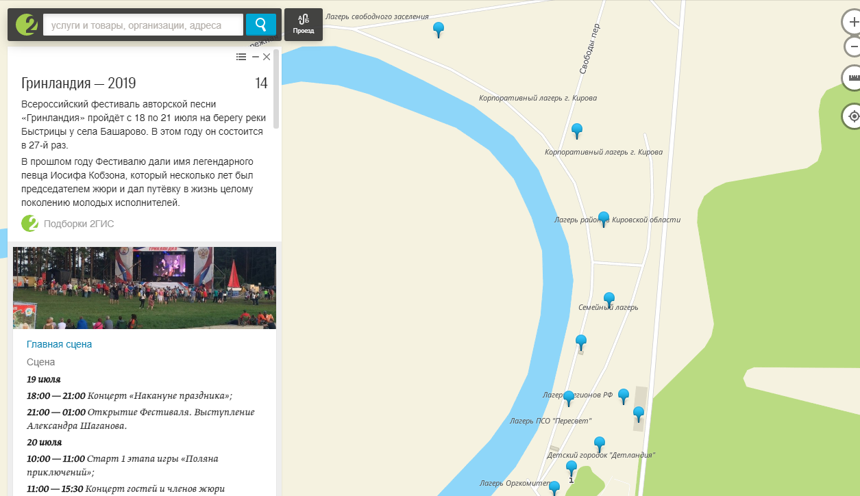 Достаточно установить на свой смартфон или планшет специальное приложение. На карте 2ГИС прорисовали схему расположения сцен, лагерей и спортплощадок Фестиваля А в подборке добавили афишу мероприятий и выступлений артистов.