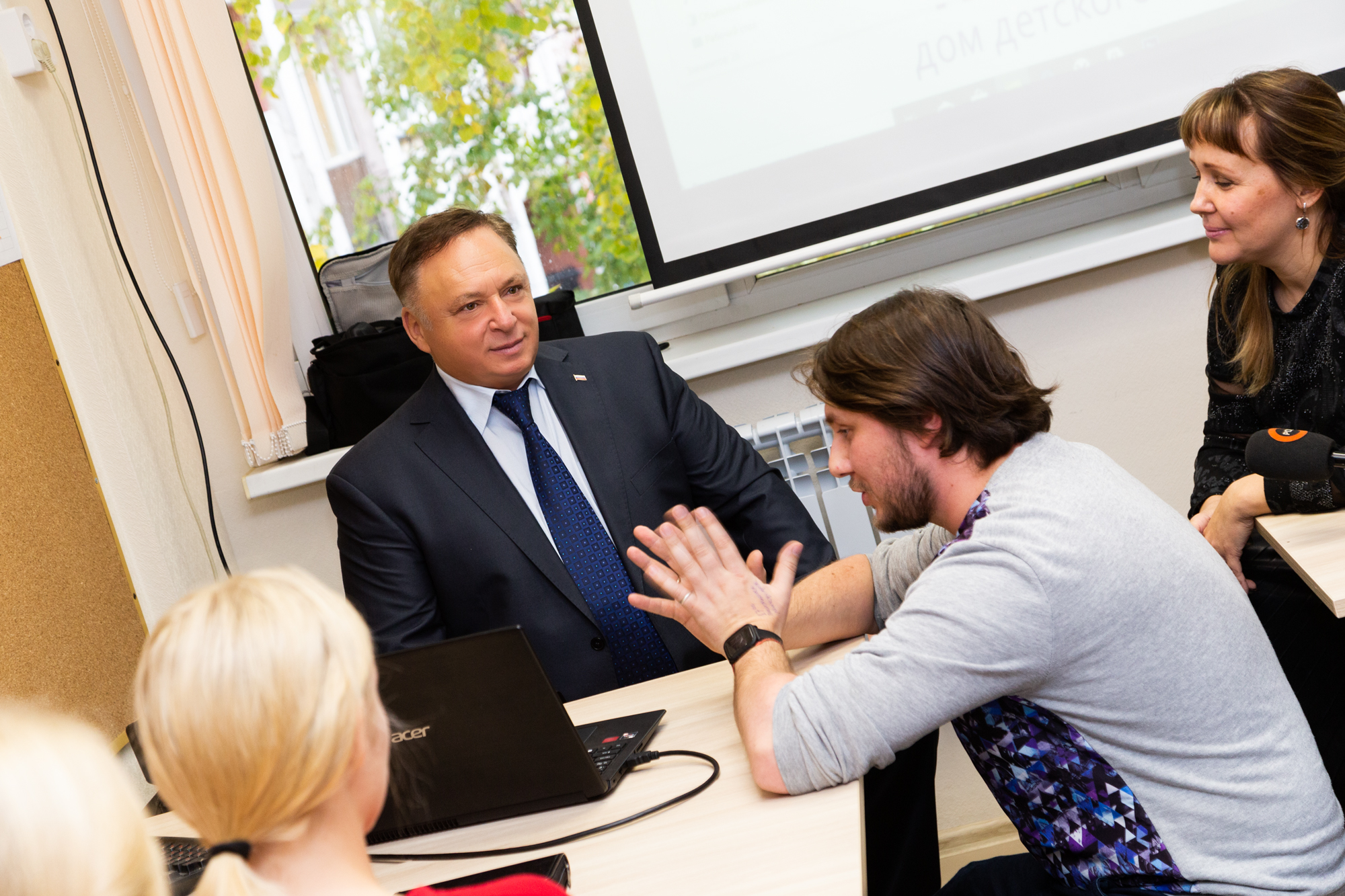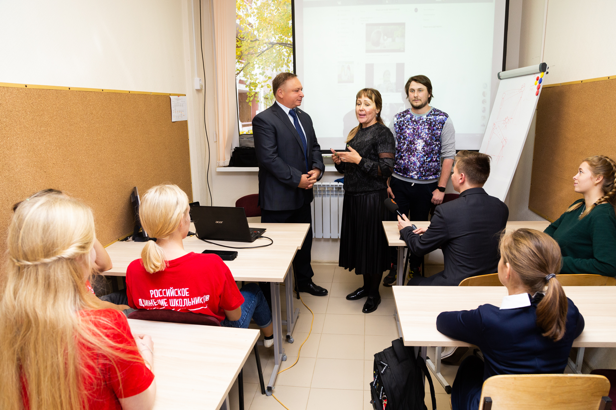 Директор ДДТ "Вдохновение" Виктория Савиных рассказала депутату, что на базе ДДТ «Вдохновение» второй год работает медиашкола «Гринландия». Как признаются ребята, благодаря занятиям, они сильно выросли в профессиональном плане, познакомились с интересными людьми и попробовали себя в новых амплуа.