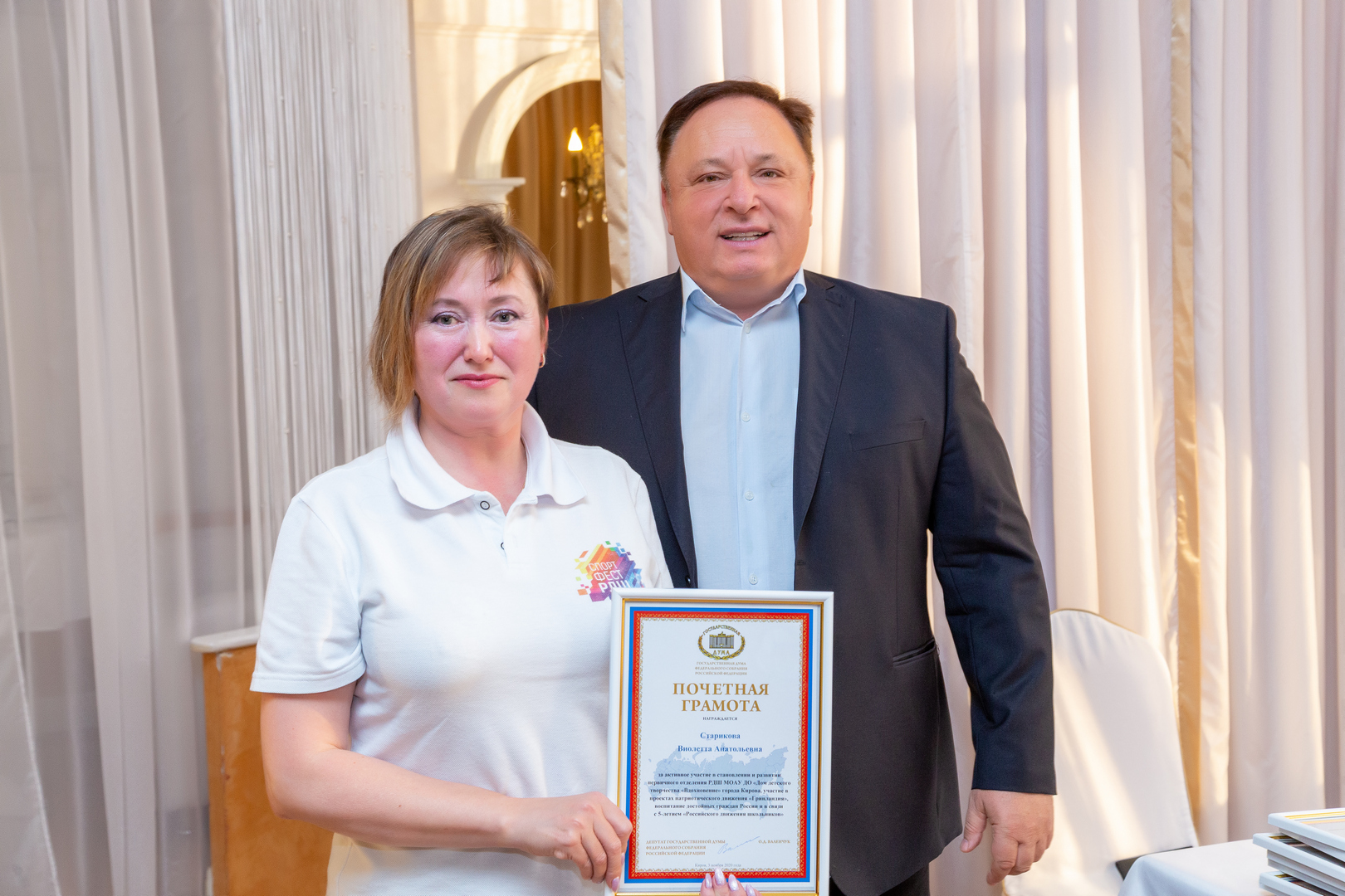За помощь в становлении «РДШ» и активное участие в патриотическом движении «Гринландии» Олег Валенчук наградил родителей-активистов Почетными грамотами.