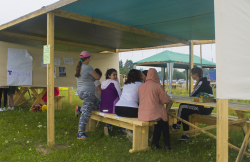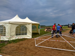 Пока многочисленные гости только заселяются, ставят палатки и разбирают вещи, участники педагогического лагеря уже работают.