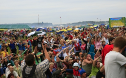 Послушать бардовские песни на берегу Быстрицы в Кировской области собралось около ста тысяч человек со всех регионов страны. Судя по номерам машин на огромной автостоянке, народ приехал даже из Сибири. Тем не менее, несмотря на такое количество людей, на фестивале не было даже мелких ЧП. И дело тут не только в хорошей организации, но и в том, что на фестивале почти не было пьяных: сыграл свою роль запрет на продажу алкоголя, хотя "сухой закон" соблюдали не все. Возникла даже комичная...
